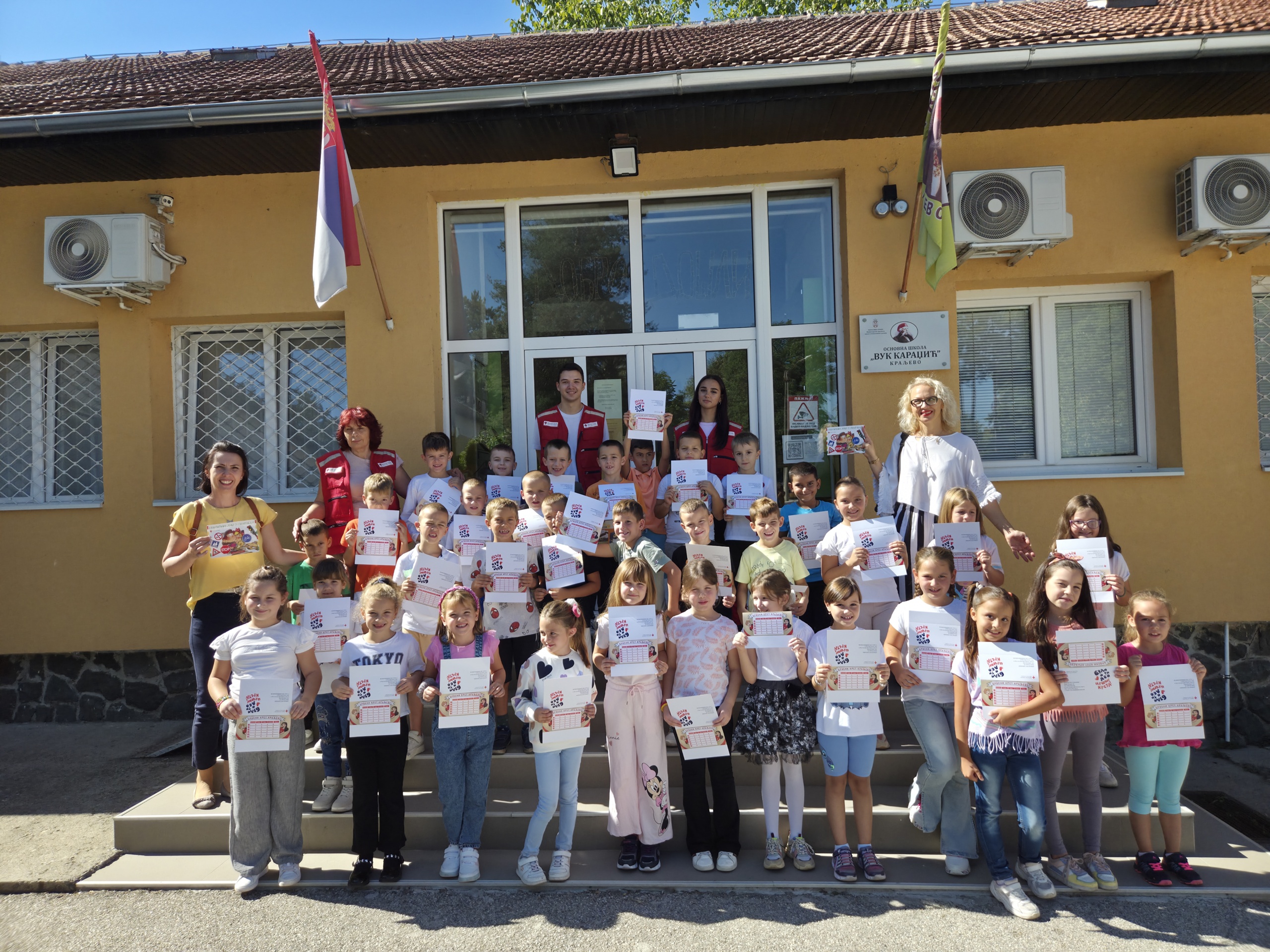 Волонтери Црвеног крста Краљево су на почетку и ове школске године поклонили посебну пажњу ђацима првацима. Они су 19. септембра у матичној школи, а 24. септембра 2025. године у издвојеном одељењу на Берановцу одржали предавање и радионицу на тему Безбедност деце у саобраћају. Најмлађи ученици су обновили и проширили знања о својој, али и о безбедности других учесника у саобраћају. Волонтери и учитељица Татјана Марјановић су их подсетили неких саобраћајних прописа, с посебним нагласком на прелазак преко пешачког прелаза, везивање појаса током вожње, безбедну вожњу бициклом.