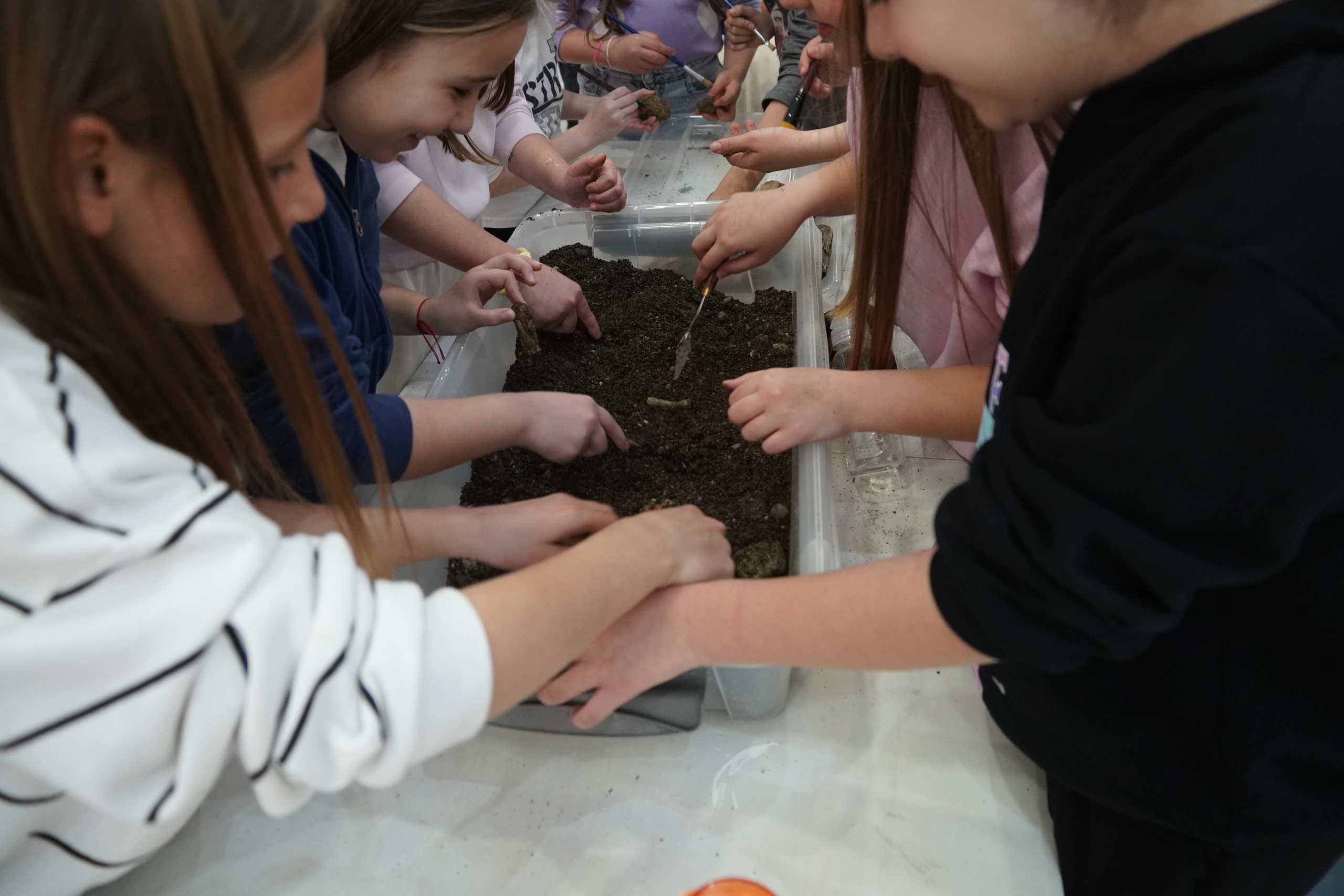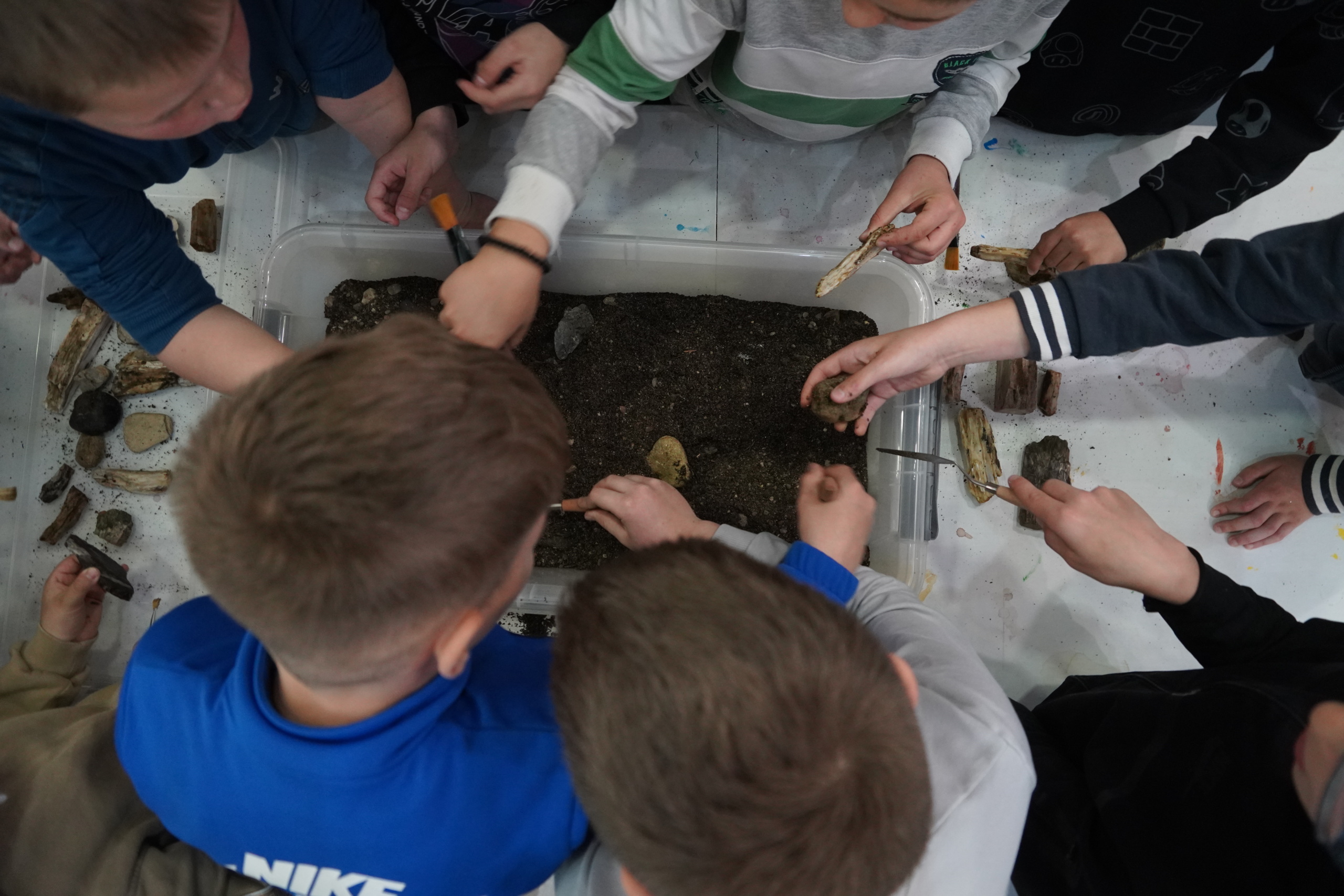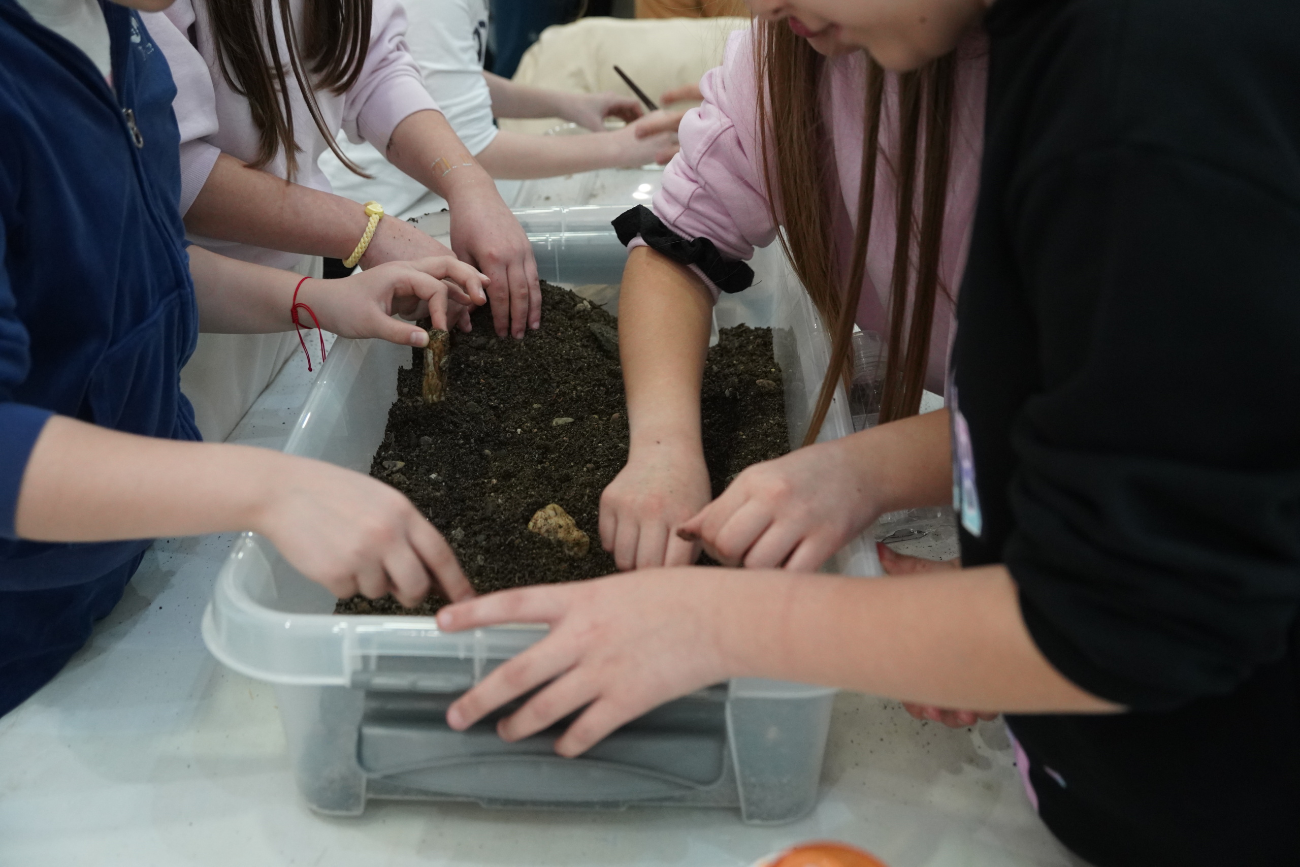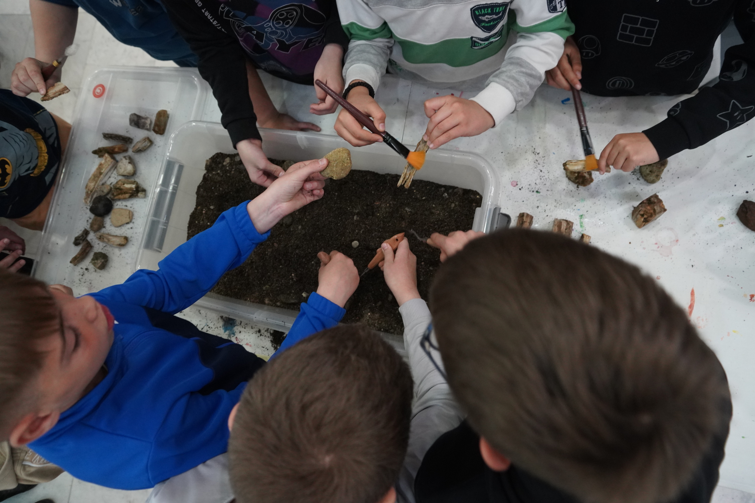 Завршна активност огледала се у стварању малих археолога. У посудама пуним земље, уз употребу алата, ученици су проналазили скривено камење. Задатак је био да процене, који је од тих каменчића са Лојаника, а шта је обично камење.