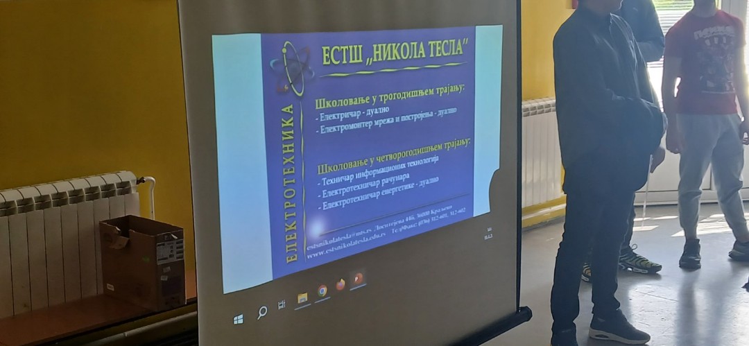 У четвртак, 16.4.2026. године нашу школу су посетили представници Електро-саобраћајно техничке школе из Краљева. Презентација је одржана у матичној школи и у издвојеном одељењу на Берановцу за ученике осмог разреда. Ученици су кроз презентацију и излагање представника имали прилику да се упознају са условима уписа, смеровима, предметима и свим појединостима везаним за смерове које школа уписује наредне школске године. Такође им је представљена могућности запослења и даљег школовања након завршетка ове средње школе.