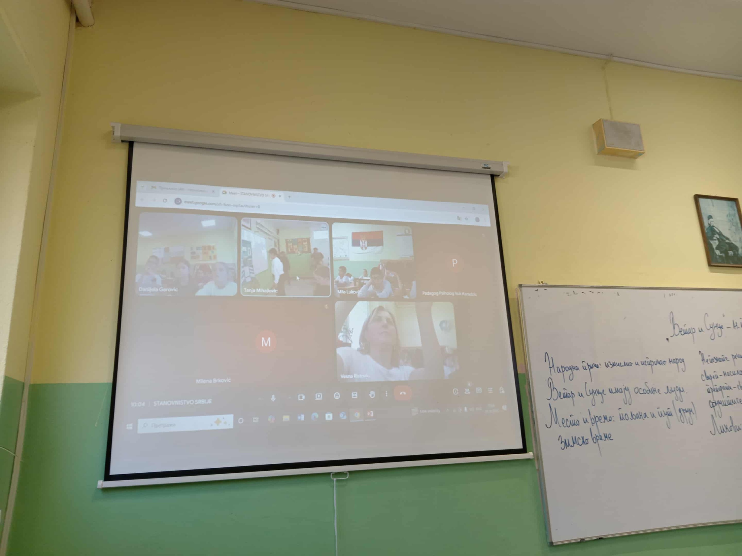 Уз помоћ google meet-a, свих шест одељења је било на окупу. Становништво Србије обрађивано је егземпларном методом. Након представљања Срба, ученици су имали задатке да представе по једну народност или националну мањину. Из издвојеног одељењу на Берановцу ученици су послали слику о Мађарима. У матичној школи смо говорили о Румунима, Македонцима и Бошњацима. Из Каменице смо добили подршку у виду представљања застава народа и народности.